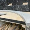 Wat haast niemand kan, een randsteen van keramiek maken in een ronding. Omdat keramiek niet rond geslepen kan worden zonder dat je hierdoor tegen de kern van het materiaal aan kijkt, zetten wij de randsteen met kleine segmenten alsnog rond.